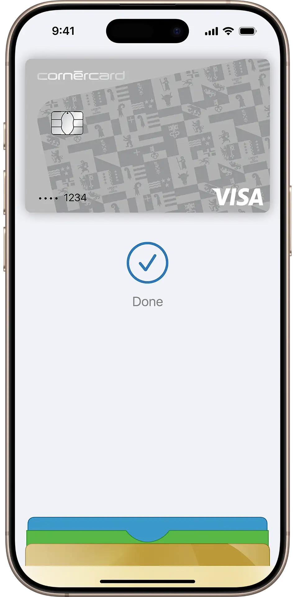 Die Nutzung von Apple Pay für Ihre Cornèrcard Kredit- oder Prepaidkarte ist kostenlos.